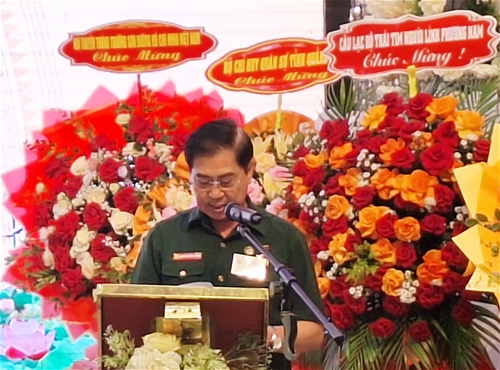 Đồng chí Nguyễn Công Trung- Chủ nhiệm CLB Trái tim người lính phương Nam phát biểu tại đại hội.