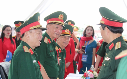Bộ trưởng Phan Văn Giang hỏi chuyện thân mật Đại tá Thái Sầm, Trưởng ban Kiểm tra Hội TSVN và Trưởng ban Tuyên huấn Binh đoàn 12 Trần Thị Hoa (đứng giữa).