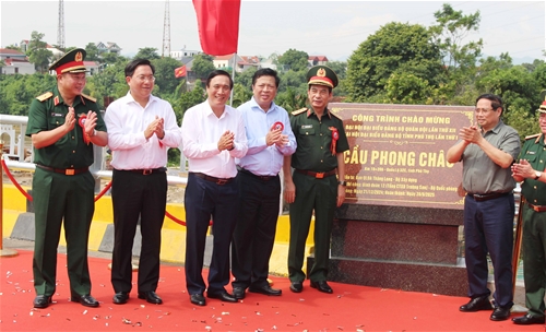 Thủ tướng Phạm Minh Chính, Bộ trưởng Phan Văn Giang và lãnh đạo Bộ Xây dựng, Lãnh đạo tỉnh Phú Thọ đã cắt băng khánh thành cầu Phong Châu mới trong tiếng vỗ tay, reo hò của hàng ngàn người dân và các đại biểu dự Lễ. Sau đó Thủ tướng và Bộ trưởng Phan Văn Giang cùng các đồng chí đại biểu đã kéo băng tấm biển “Cầu Phong Châu, công trình chào mừng Đại hội Đảng bộ Quân đội và Đại hội Đảng bộ Phú Thọ lần thứ Nhất”.