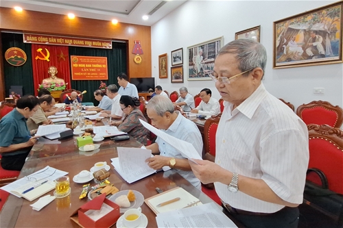 Đại tá Ngô Quốc Quỳ - Uỷ viên BTV, Trưởng Ban tổ chức trình bày báo cáo về công tác tổ chức của cơ quan trung ương hội, về việc miễn nhiệm và bổ nhiệm một số chức danh của Ban biên tập Trang thông tin điện tử và Bản tin Trường Sơn.