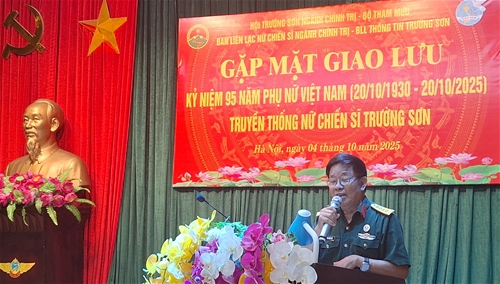 Sáng ngày 04 tháng 10 năm 2025, tại bảo tàng PK-KQ 173C đường Trường Chinh thành phố Hà Nội, Hội Truyền thống Trường Sơn – Đường Hồ Chí Minh Bộ Tham mưu cùng Hội Truyền thống Trường Sơn – Đường Hồ Chí Minh Ngành Chính trị và Ban liên lạc Nữ chiến sĩ Trường Sơn Ngành Chính trị; đã tổ chức hội nghị: Gặp mặt kỉ niệm 95 năm ngày thành lập Hội LHPN Việt Nam – Ngày Phụ nữ Việt Nam 20 tháng 10.