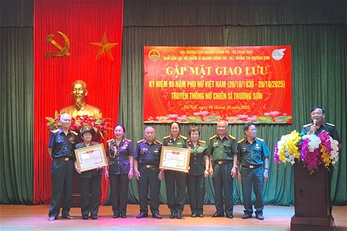 Ghi nhận những thành tích đóng góp xuất sắc của các tập thể và cá nhân hội viên Nữ CSTS trong năm 2024-2025, Hội TSVN đã trao tặng bằng khen cho 2 tập thể và 6 cá nhân thuộc BLL Nữ CSTS Ngành Chính trị và Bộ tham mưu Trường Sơn.