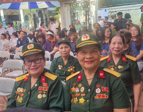 Nhà thơ Trần Đăng Khoa và Nữ Chiến sĩ giao liên Trường Sơn Ngô Thị Tuyết-Phó chủ tịch Hội Trường Sơn-Đường Hồ Chí Minh thành phố Hà Nội, Trưởng ban liên lạc nữ CSTS Hà Nội, đại diện cho cựu nữ CSTS phát biểu tại buổi lễ .