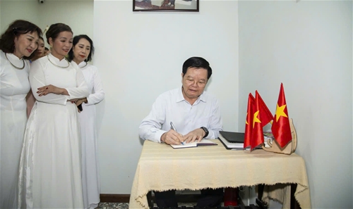 Đồng chí Phó thủ tướng CP Mai Văn Chính ghi sổ lưu niệm.