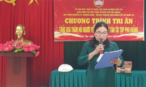 Chiều ngày 04 tháng 10 năm 2025, tại nhà văn hóa TDP Phụ Khang, phường Sơn Tây, thành phố Hà Nội. Đội thiện nguyện công ty thương binh Tây Trường Sơn, tổ chức chương trình thăm hỏi, tri ân, tặng quà người yếu thế, người tàn tật và trẻ em TDP Phụ Khang, phường Sơn Tây, thành phố Hà Nội.