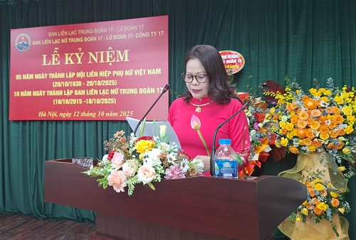 Sáng ngày 12 tháng 10 năm 2025, tại hội trường Công ty TNHH một thành viên 17/ Binh đoàn 12; Hội Truyền thống Trường Sơn – Đường Hồ Chí Minh trung đoàn 17 và BLL Nữ CSTS trung đoàn 17, tổ chức Lễ kỉ niệm 95 năm ngày thành lập Hội LHPN Việt Nam và 10 năm ngày thành lập BLL Nữ CSTS trung đoàn 17.