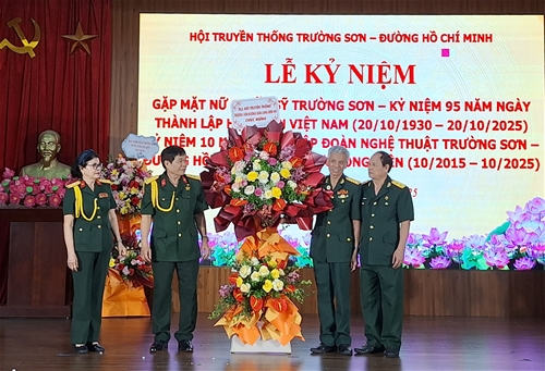 Đoàn đại biểu Ban công tác Nữ Hội Trường Sơn Việt Nam, các đoàn đại biểu , các CLB văn nghệ về dự buổi lễ đã trao tặng nhiều lẵng hoa và quà chúc mừng .