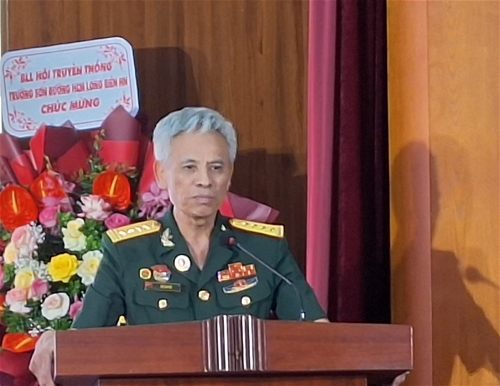 Đại tá Đỗ Trung Bộ – UVBCH Hội TSHN, Chủ tịch Hội Trường Sơn khu vực Long Biên, phát biểu và trao tặng hoa, quà chúc mừng BLL Nữ CSTS khu vực Long Biên cùng đoàn nghệ thuật Trường Sơn khu vực Long Bìên.