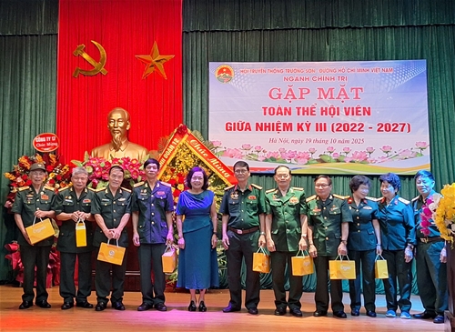 Thực hiện Nghị quyết Đại hội nhiệm kỳ III (2022 - 2027) Hội TT Trường Sơn Ngành Chính trị, về việc sơ kết thực hiện Nghị quyết giữa nhiệm kỳ 3; Sáng ngày 19/10/2025, tại Bảo thàng PK-KQ 173C đường Trường Chinh TP Hà Nội; Thường trực Hội Trường Sơn Ngành Chính trị, tổ chức trọng thể buổi Gặp mặt toàn thể Hội viên - Sơ kết thực hiện Nghị quyết giữa nhiệm kỳ III (2022-2027).