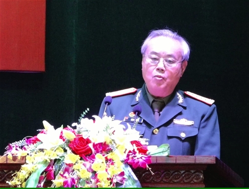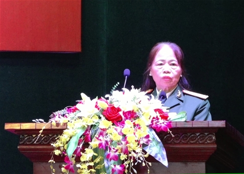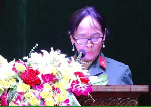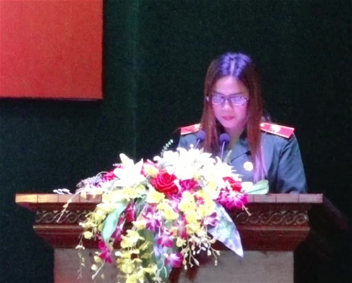 Đại biểu BLL e573 phát biểu ôn lại truyền thống và hưởng ứng phong trào thi đua tại buổi lễ.