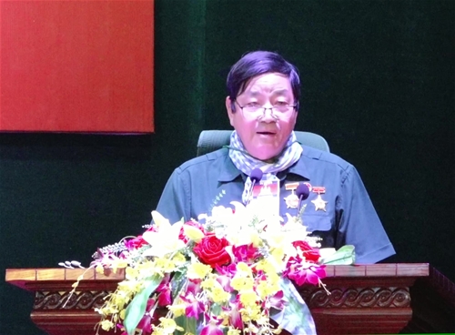 Đại biểu CCB Mặt trận 579 phát biểu và hưởng ứng phong trào thi đua tại buổi lễ.