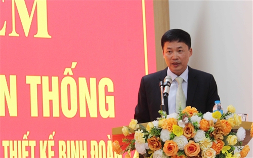 Đồng chí Nguyễn Hồng Trung, Chủ tịch Hội đồng Quản trị Công ty Tư vấn Trường Sơn báo cáo chặng đường 60 năm của Khảo sát thiết kế Trường Sơn nay là Công ty Tư vấn Trường Sơn.