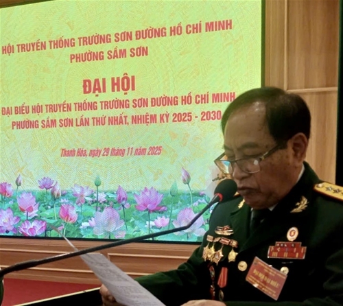 Sáng ngày 29 tháng 11 năm 2025, tại Hội trường Đoàn an dưỡng 296 (Tổng cục Hậu cần, Bộ Quốc phòng), số 52 Nguyễn Du, phường Sầm Sơn, tỉnh Thanh Hóa. Hội Truyền thống Trường Sơn - Đường Hồ Chí Minh phường Sầm Sơn đã long trọng thổ chức Đại hội Đại biểu lần thứ Nhất, nhiệm kỳ 2025 - 2030