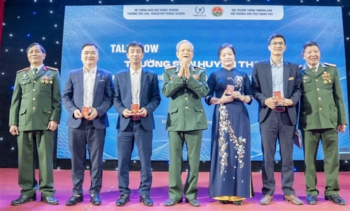 Nhân dịp này, thừa ủy quyền của TW Hội Trường Sơn Việt Nam, Thượng tá Lê Đức Phán - Chủ tịch Hội Trường Sơn tỉnh Thanh Hóa trao tặng Kỷ niệm chương Chiến sĩ Trường Sơn anh hùng cho 05 thầy cô giáo trong Ban Giám hiệu nhà trường. Hội Trường Sơn tỉnh Thanh Hóa đã trao tặng bức ảnh kỷ niệm cho nhà trường