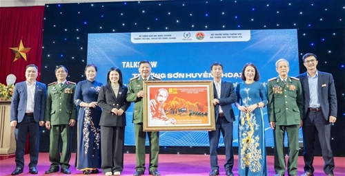 Hội Trường Sơn tặng bức ảnh kỷ niệm nhà trường