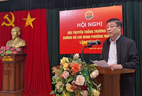 Thiếu tướng Hòng Anh Tuấn- PCT Hội, thay mặt lãnh đạo Hội TSVN, phát biểu chỉ đạo, nhất quán cao ý kiến đánh giá của đồng chí Phó chủ tịch MTTQ phường, đề nghị cán bộ, hội viên quán triệt, thực hiện. Đồng thời trân trọng sự quan tâm của lãnh đạo thành phố, Lãnh đạo phường, các phòng, ban ngành, hội... thuộc phường Nghĩa Đô, đã quan tám giúp đỡ Hội Trường Sơn nhiều năm qua, mong tiếp tục tạo điều kiện, ngay từ ngày đầu Hội mới sáp nhập.