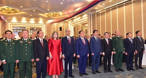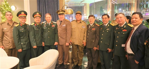 Đoàn đại biểu Hội Trường Sơn Việt Nam tham dự tặng quà chúc mừng Đại sứ quán và sự kiện có Thiếu tướng Hoàng Anh Tuấn - Phó Chủ tịch Thường trực, Thiếu tướng Hồ Sỹ Hậu - Phó Chủ tịch phụ trách đối ngoại, đại biểu Văn phòng, Ban Tuyên truyền Thi đua và Cựu chiến binh Trường Sơn khu vực phường Ba Đình.