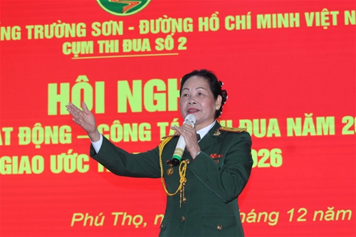Đại tá Vũ Tiến Đặng, Chủ tịch Hội TS Phú Thọ, Cụm trưởng, thay mặt báo cáo kết quả thi đua tổ chức hoạt động năm 2025 của Cụm. Dù năm 2025 gặp nhiều khó khăn, song Hội TS các cấp đã chỉ đạo các đơn vị hoàn thành tốt hoạt động Hội: Tổng số hội viên của Cụm: 18.500 người. Năm 2025 các đơn vị đã tổ chức thăm chiến trường xưa và thăm các di tích lịch sử cho 6.620 hội viên, chi phí khoảng gần 2 tỷ đồng; Tổ chức tuyên tuyền giáo dục cho 7.620 hội viên; làm 5 phóng sự tuyên truyên trên truyền hình; xuất bản 3 đầu sách với 900 cuốn; xây dựng 21 chương trình văn nghệ, biểu diễn 65 buổi cho 8.650 người xem; tổ chức gặp mặt truyền thống tại 88 xã phường với 7.545 hội viên tham dự; xây dựng 8 căn nhà tình nghĩa trị giá 512 triệu đồng; tặng 1.713 suất quà cho hội viên, trị giá 240 triệu đồng; viếng 136 hội viên với 152 triệu đồng; tổ chức mừng thọ 615 hội viên với 82 triệu đồng; hiến 5.420 m2 đất cho công trình phúc lợi; đóng góp 3.200 ngày công; khám bệnh miễn phí cho 2.750 hội viên; cho hội viên vay không lấy lãi 350 triệu đồng; tặng 32 triệu đồng cho hội viên nghèo; ủng hộ đồng bào vùng lũ 87 triệu đồng; ủng hộ Cuba: 36 triệu đồng...
