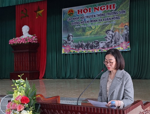 Đồng chí Hoàng Thị Minh Thư – Trưởng phòng Văn hoá xã, thay mặt Lãnh đạo xã Xuân Hồng công bố Quyết định của UBND xã về việc sáp nhập và thành lập Hội Trường Sơn xã Xuân Hồng tỉnh Ninh Bình, trên cơ sở của Hội Trường Sơn các xã Xuân Hồng, xuân Châu, Xuân Thượng và Xuân Thành cũ.