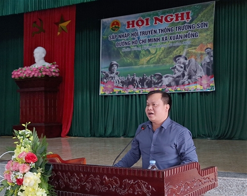 Đồng chí Nguyễn Thành Mạnh- ĐUV, Phó chủ tịch UBND xã Xuân Hồng, thay mặt lãnh đạo điạ phương phát biểu động viên, giao nhiệm vụ cho Hội Trường Sơn xã Xuân Hồng sau sáp nhập.