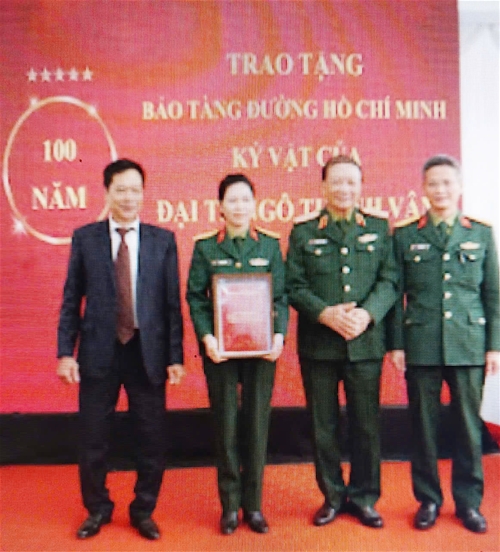 Nhân dịp này, gia đình đã trao kỷ vật của Đại tá Ngô Thành Vân cho Giám đốc Bảo tàng Đường Hồ Chí Minh, Thượng tá Hoàng Qanh - Giám đốc cùng đại diện Binh đoàn 12, Hội Trường Sơn Việt Nam đã chứng kiến tiếp nhận và trao Giấy chứng nhận cho gia đình.
