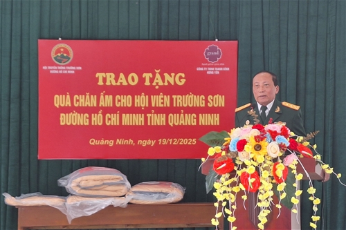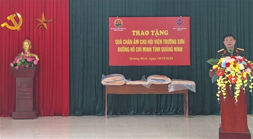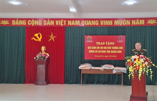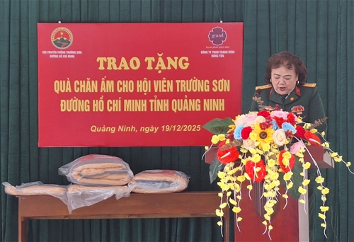 Đồng chí Lương Sĩ Nhung và đồng chí Nguyễn Thanh Bình đã thay mặt đoàn công tác, trao tặng 80 chăn ấm cho 80 hội viên Trường Sơn tỉnh Quảng Ninh trong mùa đông năm 2025.