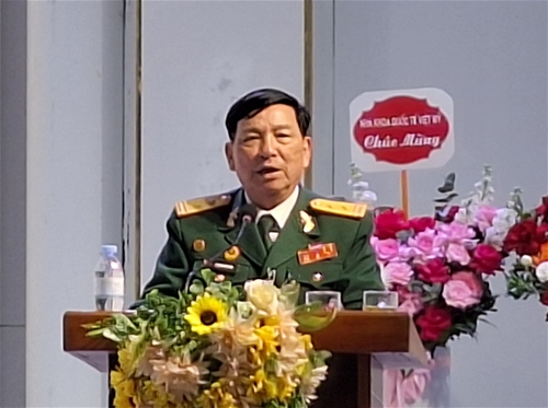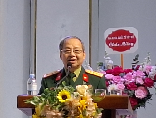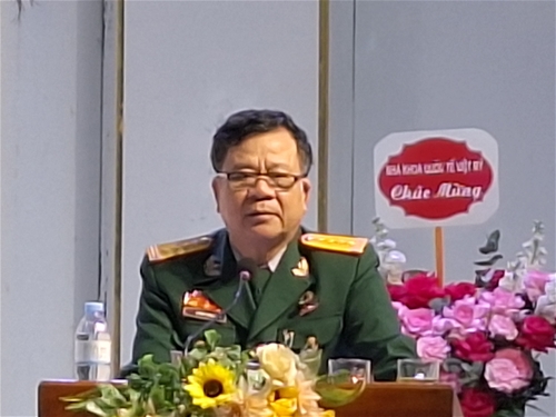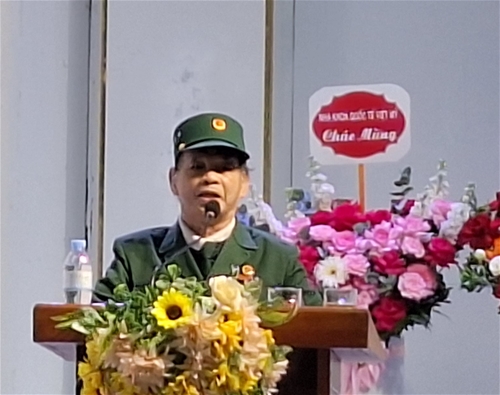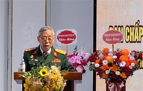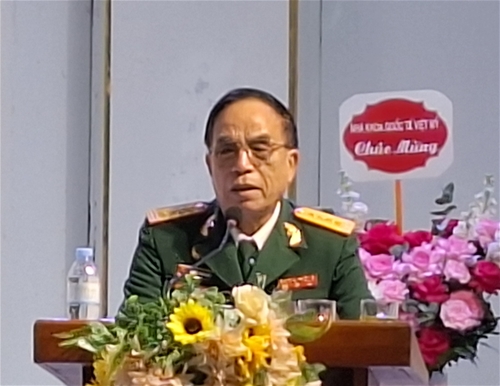 Đồng chí thiếu tướng Lương Sĩ Nhung - PCT hội TSVN phát biểu với hội nghị.