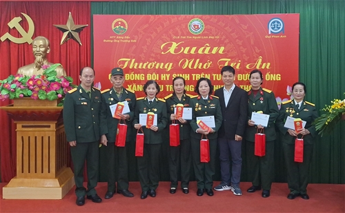 Đồng chí CCB Tạ Ngọc Phúc – Chủ nhiệm Câu lạc bộ trái tim Người lính Bác Hồ và Đồng chí Lê Minh Tuân-Đại diện Quỹ xã hội Phan Anh, đã phát biểu cảm tưởng và trao tặng các gia đình Liệt sỹ những phần quà tri ân sự hy sinh của các chiến sỹ xăng dầu – đường ống Trường Sơn, trong cuộc kháng chiến chống Mỹ cứu nước, trên tuyến đường ống xăng dầu Trường Sơn huyền thoại.