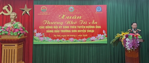 Sáng ngày 04-01-2026, tại hội trường Bảo tàng Phòng không-Không quân 173C đường Trường Chinh thành phố Hà Nội; Hội truyền thống Xăng dầu-Đường ống Trường Sơn (Hội XD-ĐÔ TS), cùng Ban chủ nhiệm Câu lạc bộ trái tim Người lính Bác Hồ và Quỹ xã hội Phan Anh – Những đơn vị đồng tổ chức chương trình “Xuân thương nhớ, tri ân các đồng đội đã hy sinh trên tuyến đường ống-xăng dầu Trường Sơn”, trong cuộc kháng chiến chống Mỹ cứu nước anh hùng của dân tộc.
