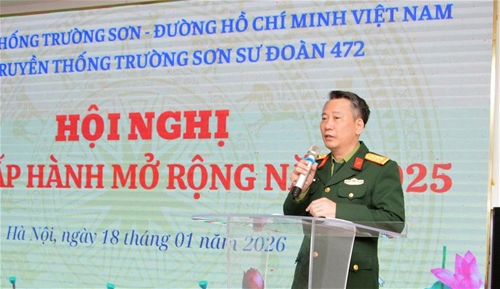 Sáng ngày 18 tháng 01 năm 2026, tại Nhà khách Bộ Quốc phòng, số 266 – Thụy Khuê - TP Hà Nội. Hội Trường Sơn - Sư đoàn 472 đã tổ chức thành công Hội nghị Ban chấp Hành (BCH) mở rộng năm 2025. Nhằm đánh giá kết quả công tác Hội năm 2025 và phương hướng công tác Hội năm 2026.