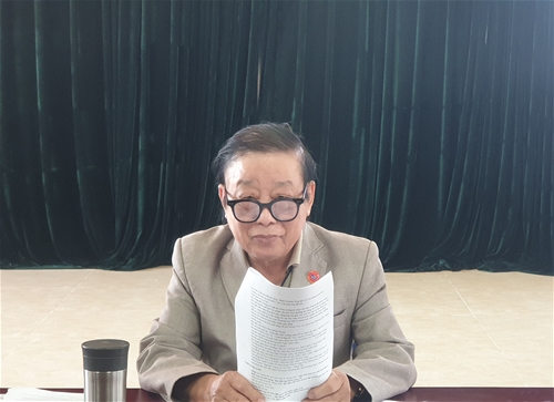Đồng chí Nguyễn Trọng Lư ( hàng trên bên phải) phát biểu tham luận tại hội nghị.