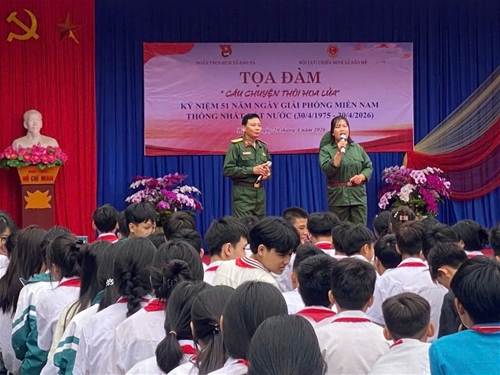 Cụ thể sáng ngày 20/4/2026, hướng tới kỷ niệm 51 năm ngày Giải phóng miền Nam, Thống nhất đất nước (30/4/1975 - 30/4/2026) kết hợp cùng hội Cựu chiến binh và Đoàn Thanh niên cộng sản Hồ Chí Minh địa phương, Hội Truyền thống Trường Sơn - Đường Hồ Chí Minh xã Bảo Hà tổ chức buổi tọa đàm giao lưu với các thày, cô giáo, học sinh, thanh, thiếu niên Trường Phổ thông Dân tộc bản trú Trung học cơ sở (PTDTBT THCS) xã Bảo Hà với chủ đề “Câu chuyện thời hoa lửa”.