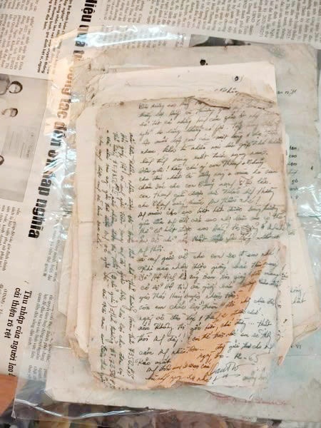 Bà Dậu đưa cho chúng tôi xem lá thư cuối cùng của chồng trước lúc hy sinh được dán lại cẩn thận bằng băng dính lên tờ giấy khác.