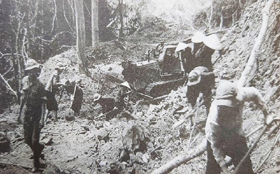 Bộ đội, thanh niên xung phong và dân công hỏa tuyến mở đường 20 - Quyết Thắng (nguồn: internet).